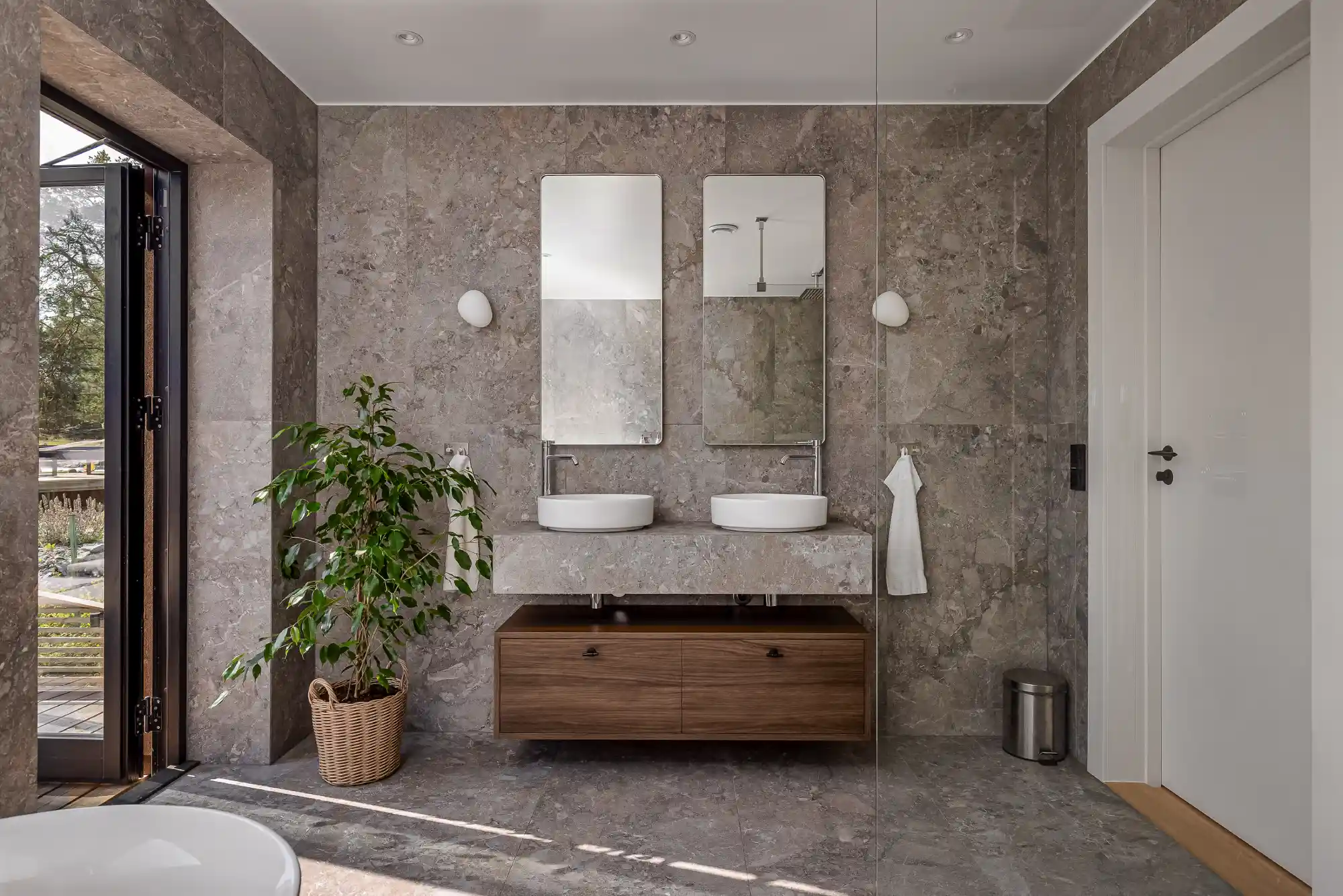 Ni erbjuds designrådgivning hos vår samarbetspartner. Tillsammans väljer vi material, detaljer och lösningar som passar er stil och ert badrum.